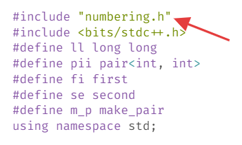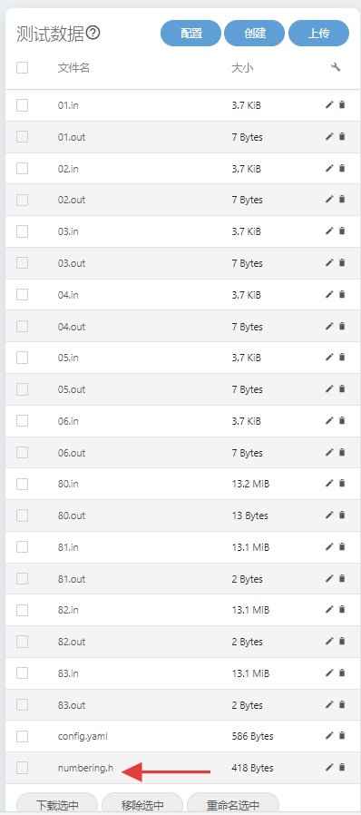 当我们下载好文件后,我们将其重命名为所需引用的头文件的名称,比如这道例题的就是将 grader.cpp 重命名为 numbering.h 即可。