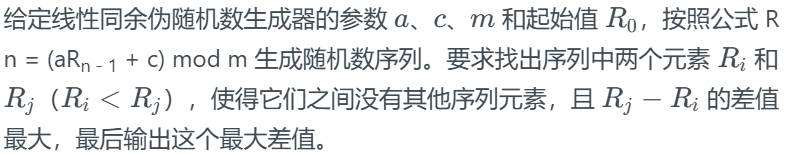 1.读取输入的 (a)、(c)、(m) 和 (R_0),并对 (a) 和 (c) 取模 (m)。