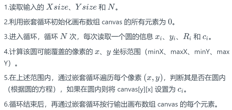 1.首先,根据输入的 (Xsize) 和 (Ysize) 初始化一个二维数组 canvas 来表示画布,将所有元素初始化为 (0)。